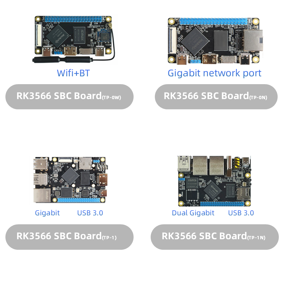 현재, 우리는 RK3566/ RK3568/ RK3588 RK3576/ RK3528A/ RV1126/ RV1106 칩을 기반으로 한 핵심 보드 및 개발 보드를 개발했습니다.
